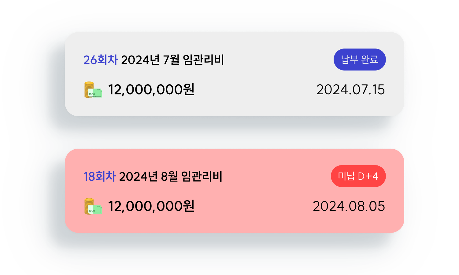 전담매니저와 시스템이 자동으로 관리 데이터를 처리해, 건물주님은 모바일로 언제 어디서나 간편하게 확인할 수 있습니다.
